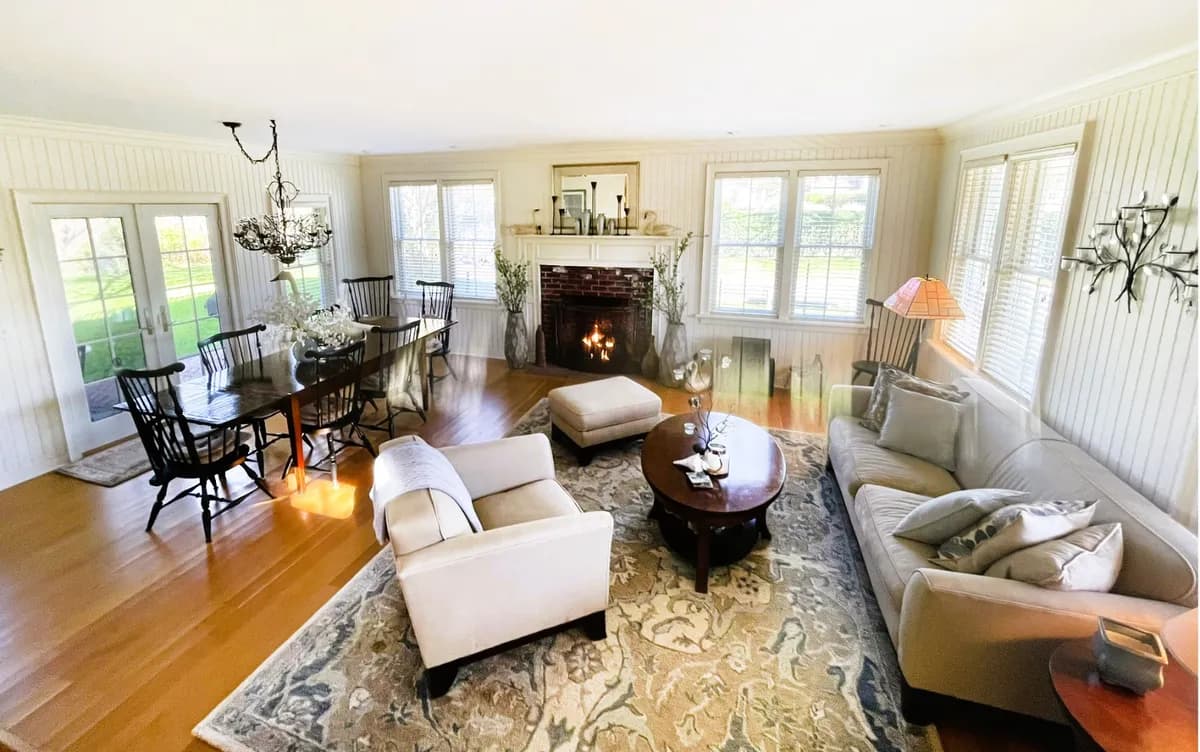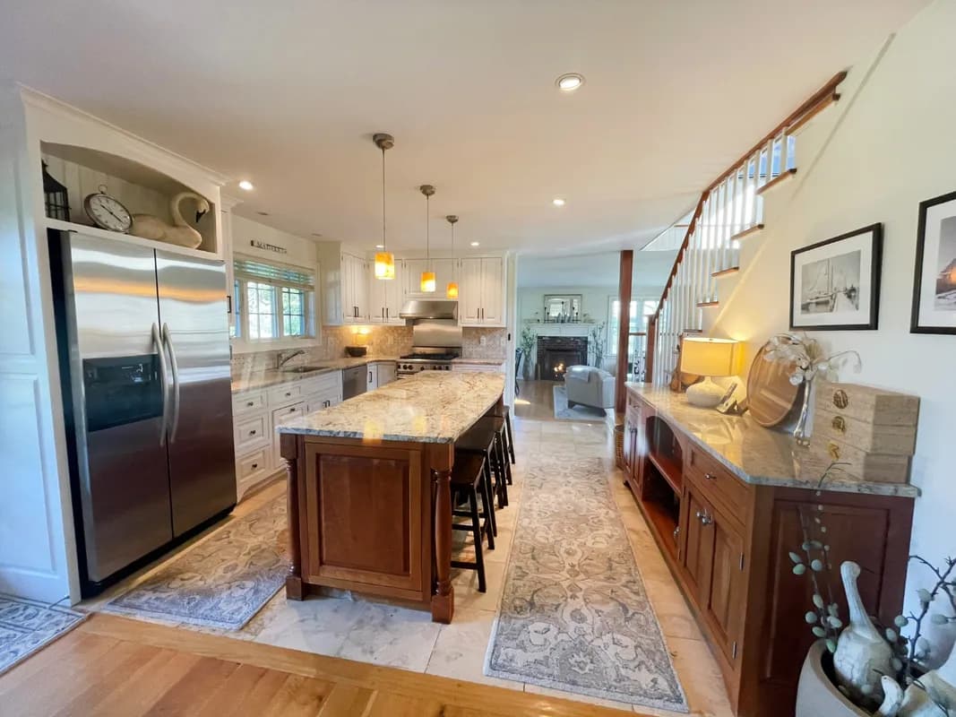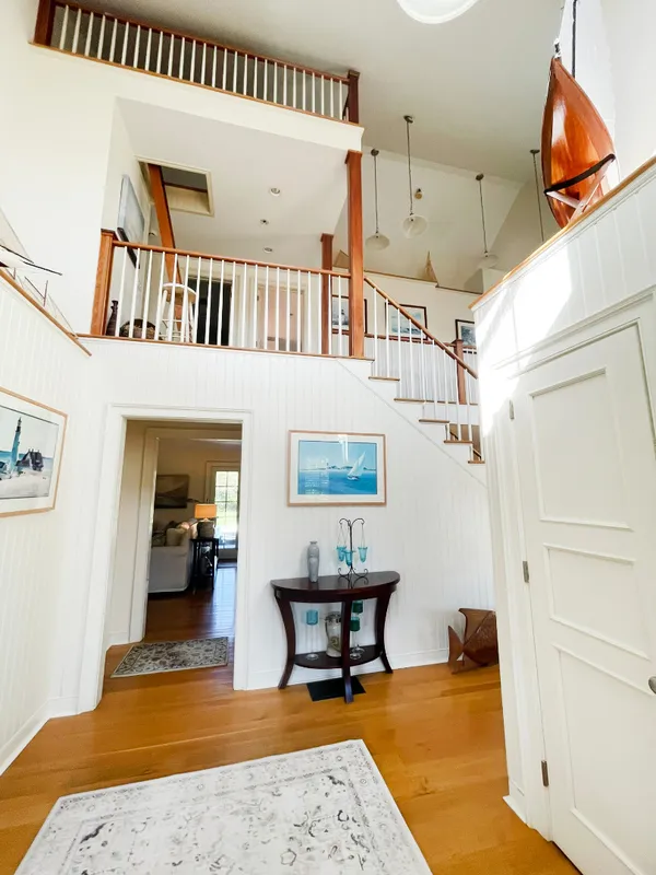 This stunning Nantucket property welcomes you with an open, cathedral-ceiling entry that sets the tone for spacious elegance. The gourmet kitchen flows into a cozy den, complete with a TV and bookshelves, ideal for gatherings or relaxed evenings. A handsome wood-paneled office, featuring a leather sofa and glass sliding doors, offers both comfort and privacy. Additional conveniences include a powder room and a stackable washer/dryer, perfect for post-beach, alongside the outdoor shower. The great room, which serves as both the dining and living area, boasts a gas fireplace and direct access to a charming back porch and patio. Upstairs, the primary suite offers a king bed, a luxurious bathroom with a large walk-in shower, dual sinks, a sitting room with TV, and a private porch. Down the hall, two queen bedrooms share a full bath with a tub and shower. A fourth bedroom with cozy nook for reading, features its own private shower bath. A second washer/dryer set is conveniently located on this floor for easy laundry access. The lower level provides ample space for overflow guests, two large sofas, a TV, and a game area, creating a welcoming retreat. Outside, the meticulously landscaped grounds invite relaxation, with multiple porches, a stone lounging area, and a bocce ball court. A scenic pedestrian path across conservation land leads to a Nantucket Sound beach. Common amenities include pickleball/tennis courts, and a space to store a boat, adding to the abundant recreational options this property offers. Additional abutting vacant lot located at 36 Ridge Lane is available for $1,495,000. It has a five bedroom installed septic system and will need to be upgraded to an IA system, at the BUYERS expense, once they build.
