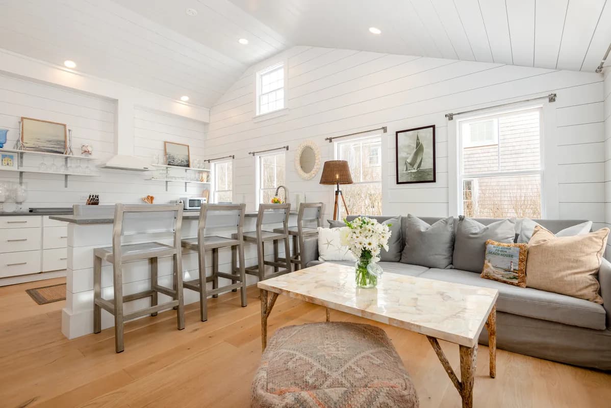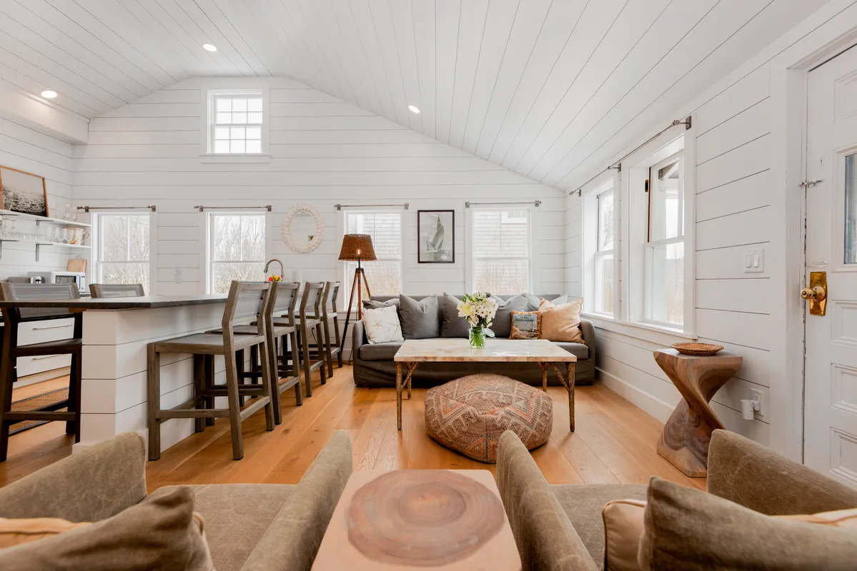 Sconset Gem ~ Two cottages on a spacious lot in the heart of 'Sconset, along with an additional doll house, a quaint summer compound ready for your enjoyment. Both fully renovated, the front house and cottage offer air conditioning and modern amenities on an oversized lot. The main house boasts 2 bedrooms and 2 full bathrooms with vaulted ceilings and shiplap detail, while the adjacent cottage offers 2 additional bedrooms and 2 full bathrooms with an open concept living area and secondary full kitchen. The doll house is oriented in the rear of the property and can be used to suit your personal needs whether as an office, bunk house, or potting shed to expand your gardens. This property is unique as it offers additional ground cover to further expand the property. The property is being sold furnished and turn key ready for summer 2025.