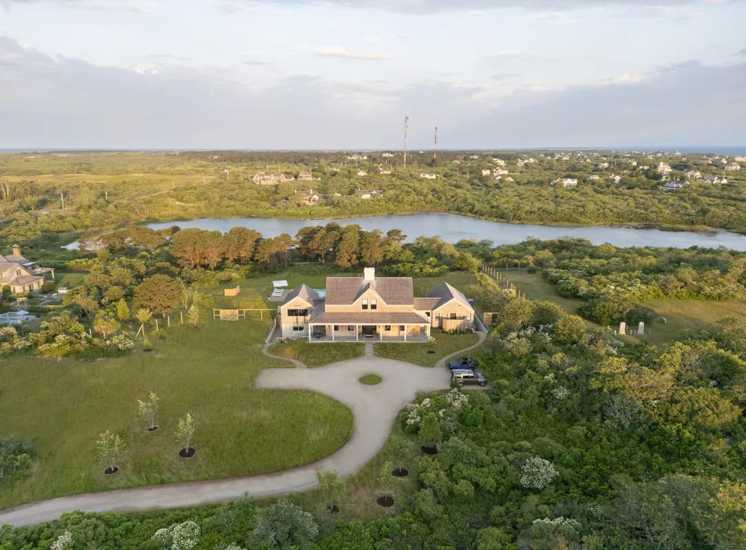 Welcome to 10 Maxey Pond, an exceptional estate designed by Lucas Velle, of Outside-In by Design in collaboration with Chip Webster Architecture. Completed in 2025, this stunning home offers ultimate privacy, nestled at the end of a peaceful cul-de-sac on 3.07 acres of pastoral land abutting over 20 acres of land bank property. Enjoy sweeping views of Maxey Pond, distant ocean vistas, and panoramic sunset views.