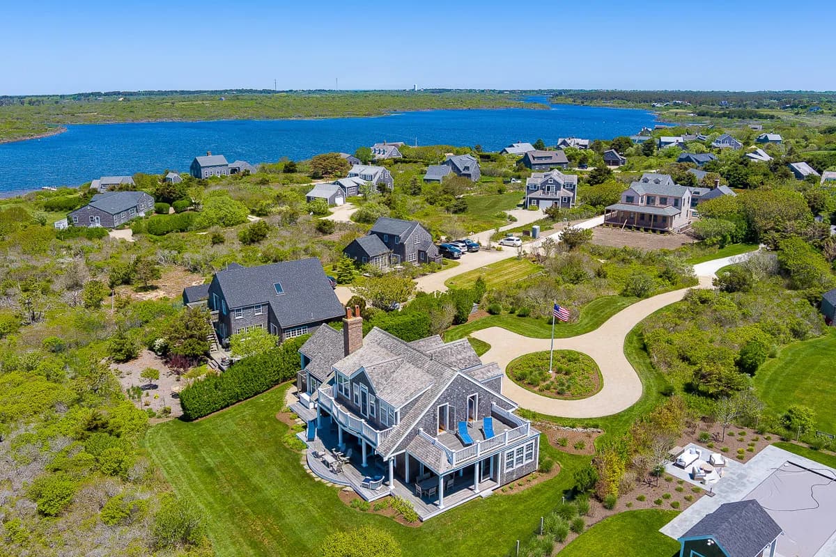 A beautiful circular driveway and pristine landscaping beckon you to this incredible Cisco oasis. The stunning property at 2 Tautemo Way offers protected views from almost every direction; Hummock Pond, the Atlantic Ocean, and Cisco Beach are just a stone's throw away and are showcased through the numerous expansive windows and French doors. The open-plan living area, surrounded by wrap-around covered porches, dominates the lower floor, while light-filled bedrooms with direct deck access fill the second floor. Settle into this gorgeous home and enjoy stellar views, ocean breezes, and all that Nantucket offers with ease.
