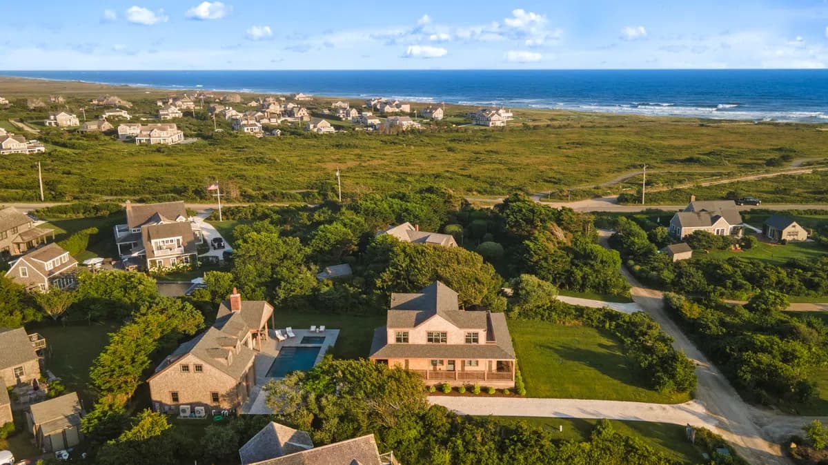 Located on a high spot in sought-after Cisco, 3 Tautemo Way is a contemporary beach compound, developed and situated to capture the sweeping views of the Atlantic Ocean, Hummock Pond, and the 780 acres of conservation land between Hummock Pond and Madaket. This well-designed property is very close to Cisco Beach and features a fully re-built and expanded upside-down main house which takes full advantage of the incredible views from the second floor, a brand-new guest cottage/pool house with an attached 2-car garage, and a custom-designed Gunite pool and spa with bluestone patio including a covered outdoor patio living room. This coastal property has been designed especially for modern beach life, the perfect haven in which to unwind and relax after a day at the beach or on the water. Soaring indoor spaces seamlessly transition to welcoming outdoor spaces including the covered outdoor living room with television, fireplace, and coastal-rated ceiling fan, the 17’x27’ pool and 8’x10’ spa both with auto-covers, lush grounds and landscaping, two separate outdoor showers, and an expansive outdoor deck on the second floor of the main house with some of the finest sunset views on the island. Easy access to Cisco Beach and bike path, Bartlett Farm, Cisco Brewery, Miacomet Golf Club, 167 Raw Seafood, and historic downtown Nantucket. The property is offered tastefully furnished and turnkey.