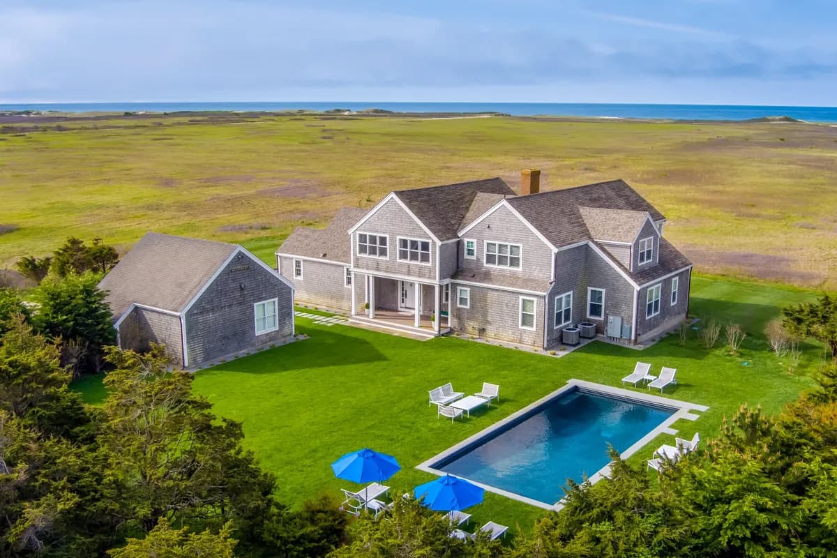 "Belvedere", where privacy, panoramic views, and the backdrop of the Atlantic Ocean are forever preserved. This sophisticated five-bedroom home offers unmatched seclusion in the Smooth Hummocks area, just 2 miles west of Downtown Nantucket. The south-facing lot is uniquely positioned abutting over 100 acres of conservation land, yet just a stone's throw to some of Nantucket's most beloved institutions such as Bartlett Farm, Cisco Brewery, and 167 Seafood. Designed for luxury living with exceptional kitchen and fixtures, all seamlessly blending with the natural, surrounding beauty. An in-ground pool and garage complete this ultimate retreat. For the discerning buyer seeking star-lit skies, ocean breezes and a front row view of spectacular sunsets, don't delay - seize this rare opportunity to make this exclusive sanctuary your own.