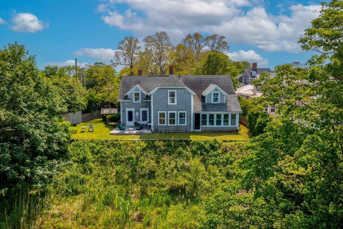 This early 20th-century home, dubbed "the Fluke" due to its whale-tail footprint, has been loved and enjoyed as a year-round and summer retreat by multiple generations of the same family for over fifty years. It is beautifully nestled on a large lot amongst grand homes on coveted Cliff Road. With surprising spaces for entertaining and for quiet retreat, the property enjoys an elevated perch over Brant Point that provides wide views and fresh breezes towards Nantucket Sound. The generous lot affords a front lawn with parking and additional expansion options.. The cliffside includes protected lands that guarantee open views for generations to come. This special location is a five-minute walk from Main Street, a short bike ride to the Westmoor Club, and calm water North Shore Beaches.