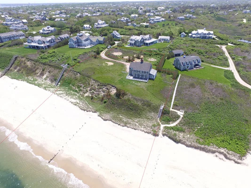 11 East Hallowell Lane (inclusive of 9 East Hallowell Lane) is a waterside 1.02-acre lot with a five-bedroom, three-bathroom charming 1920’s home. The house sits at an elevation of 28 feet above sea level and has direct access to the beach via private beach steps. This property offers stunning and unobstructed views of Nantucket Sound.