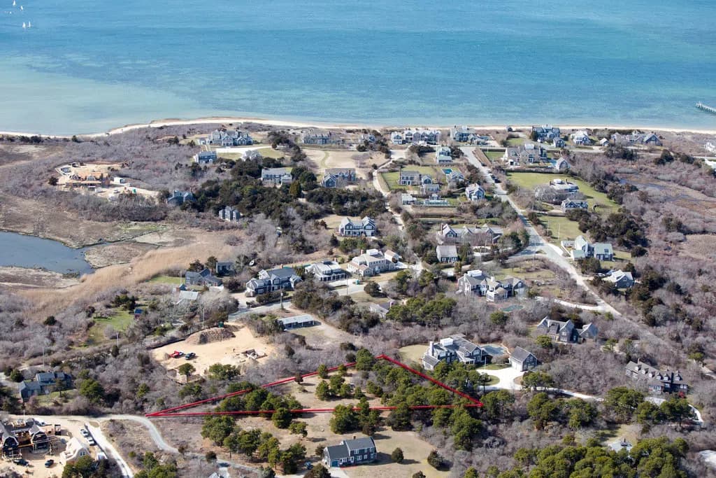 ONE ACRE LOT IN MONOMOY - Seize this rare opportunity to purchase a fabulous lot in Monomoy. Wonderful island location offering privacy and 2nd floor views on Nantucket Harbor. The lot is 46,609 sq ft. with allowable ground cover being 7% = 3,262.63 Sq.Ft. total available foot print. EXAMPLE: one could build a 7,000 sf ft main house (2,362 foot print, with 2nd floor and full finished basement.), plus a 900 sq.ft cottage / garage (with 2nd fl. = total 1,800 sq.ft.) and still have room for a lovely 20 x 40 swimming pool. Town water and town sewer located in lane nearby. No septic or well has been installed. Note: This lot is located in the "Nantucket Harbor Shimmo Needs Area".