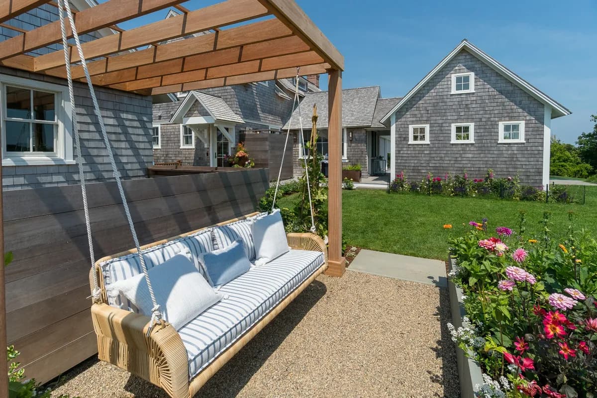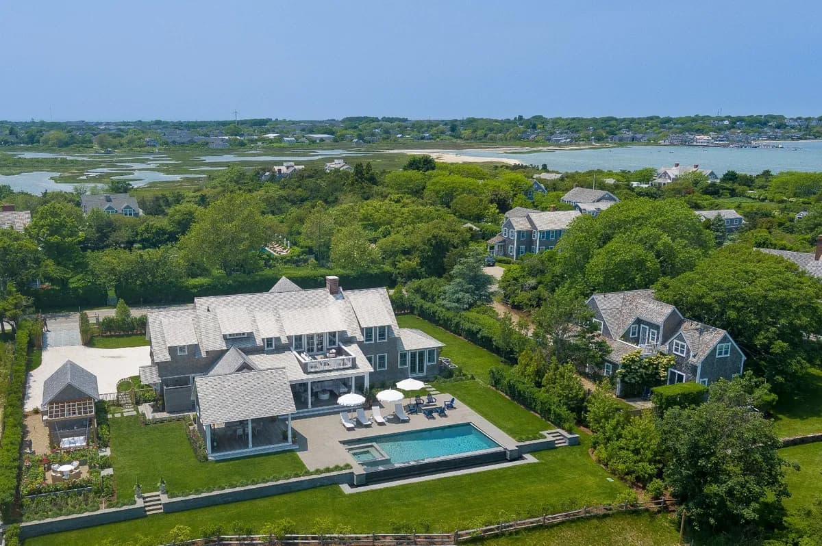 Spend your Nantucket summer in this turn-key, spacious and special home, nestled in the heart of Monomoy. The professionally decorated property completed by Kathleen Hay Designs is available for July and August 2025 occupancy. The 16x38 infinity edge pool and spa is surrounded by two spacious porches and a patio with a gas fire pit. The thoughtful landscaping features a cutting garden, enhanced privacy screening, and a variety of outdoor seating areas.The home is adjacent to a 4+acre parcel of Nantucket Conservation Foundation land affording privacy and boasts second floor water views of Nantucket harbor.