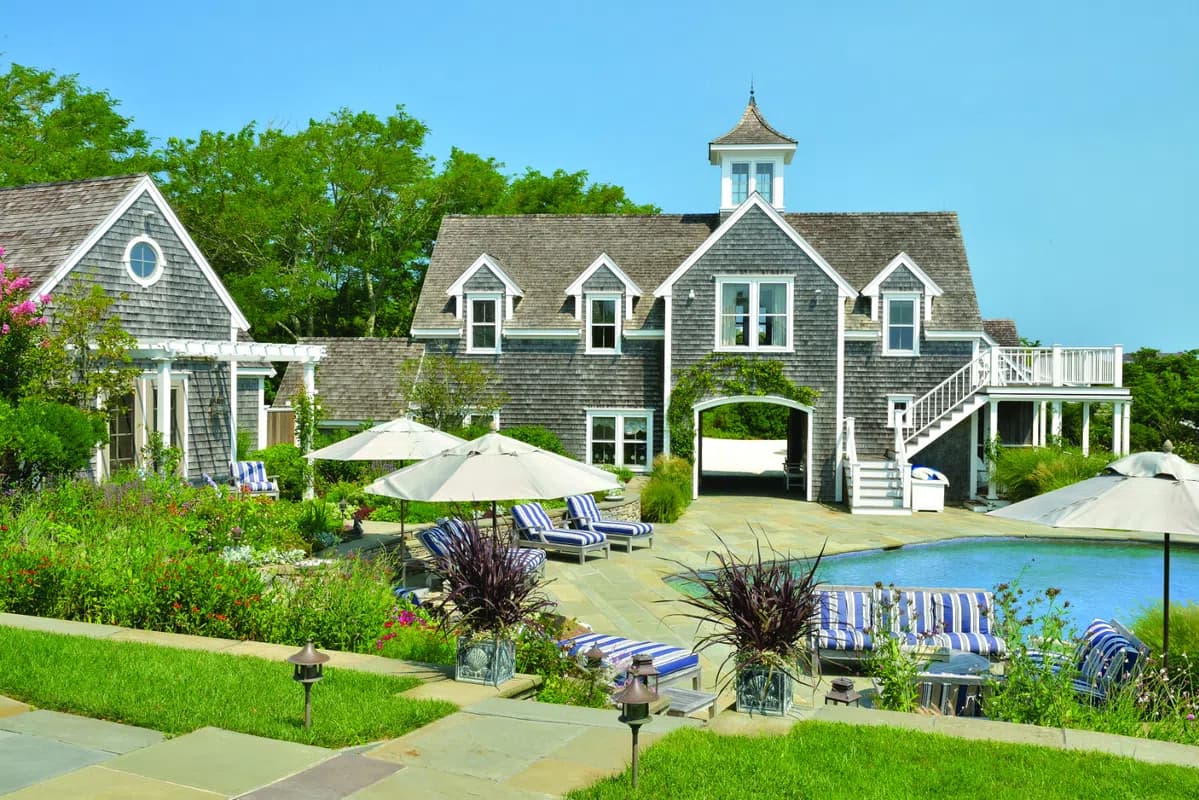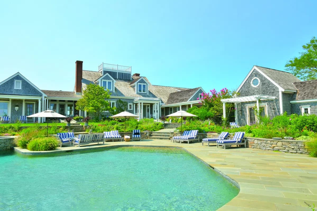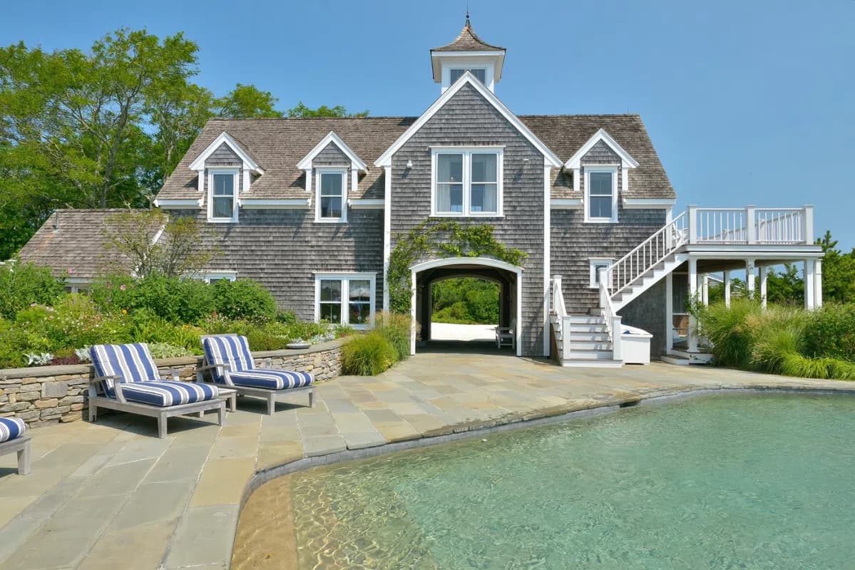 Entirely unique waterfront compound with 300 degree dramatic views, privacy, direct access to a gorgeous sandy beach, boat moorings and multiple dwellings. The "Main House" at 72 Pocomo Rd. has 4 bedrooms (3 en-suite) plus an attached "Studio" which serves as a pool house or additional bedroom with full bathroom and kitchenette. The "Cottage" includes two bedrooms and two bathrooms plus a gym with a full bathroom that could be set up as a bedroom. The "Garage" has storage for 6 cars and the "Pavilion" at 78 Pocomo Road has a commercial kitchen, world class 3,500 bottle wine cellar and tasting room and 1 bedroom and 1 bathroom. The "Guest House" at 76 Pocomo Road has 4 bedrooms and 3.5 bathrooms. Private beach stairs and a tennis court complete this elevated, waterfront compound with first floor water views of Nantucket Harbor, Medouie Creek, Town, Coatue, and Great Point Light House situated on almost 7 acres.