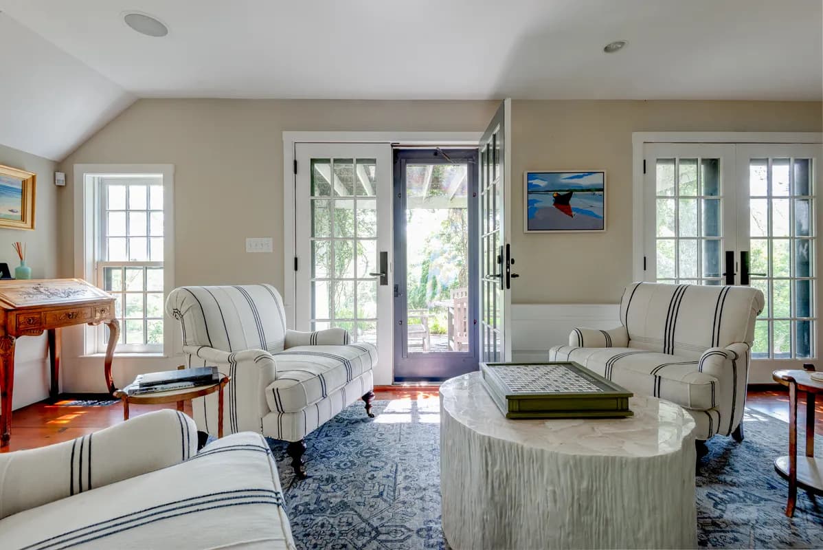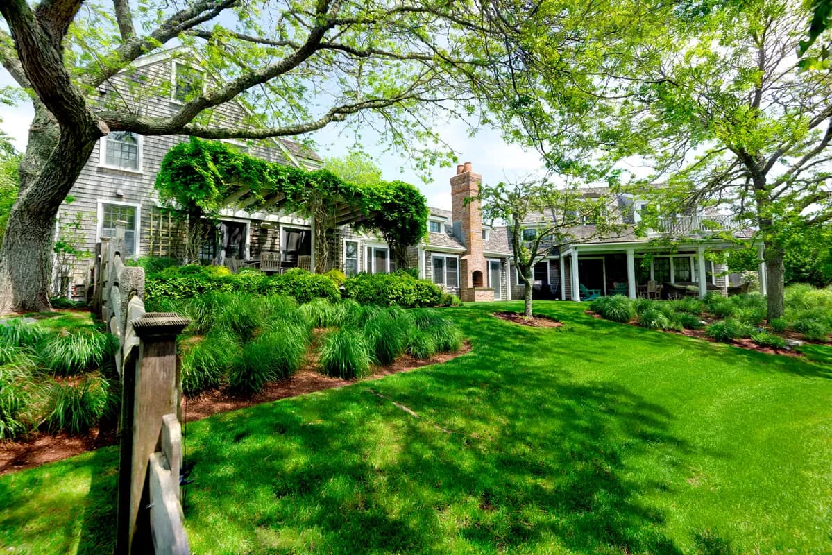 Tucked just moments from Quidnet Village and sheltered behind high hedges, this special property blends timeless Nantucket charm with thoughtful modern updates. Renovated and significantly expanded in 2008/9, the home features an open floor plan that seamlessly marries classic style with contemporary living. Nearly every room opens onto a beautifully landscaped, fenced-in lawn and garden, creating a natural connection between indoor and outdoor spaces. Highlights include a pergola-covered terrace, rolling green lawns, a covered kitchen-side patio, and a stunning outdoor fireplace perfect for gathering with friends and family on cool island evenings. Quidnet is unique to the island with a mature landscape, proximity to ocean and pond beaches, and low density