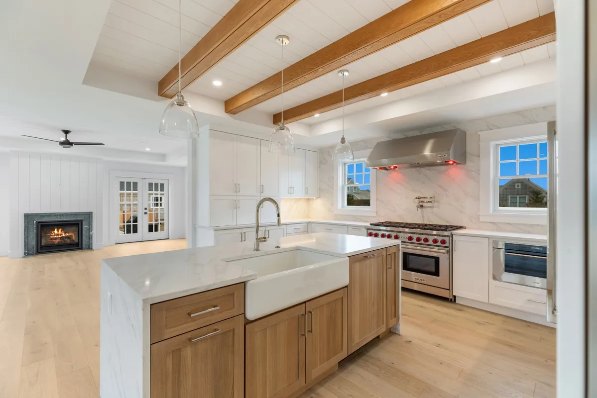 Outdoor amenities are exceptional: a 20' x 30' pool, bluestone patio, built-in grill, and gas fire pit—all complemented by deeded beach access and exclusive use of Cannonbury’s clubhouse, gym, and cutting garden.