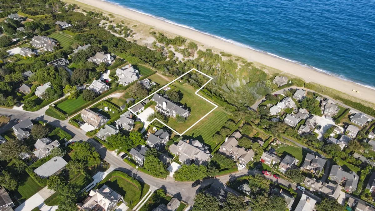 Perched high on the bluff with sweeping views of the Atlantic Ocean, the estate features a stately main house complemented by a classic three-bay garage. A gracious covered porch welcomes you, leading into a stunning living room adorned with a fireplace, multiple seating areas, and a wall of windows that frame breathtaking ocean views.