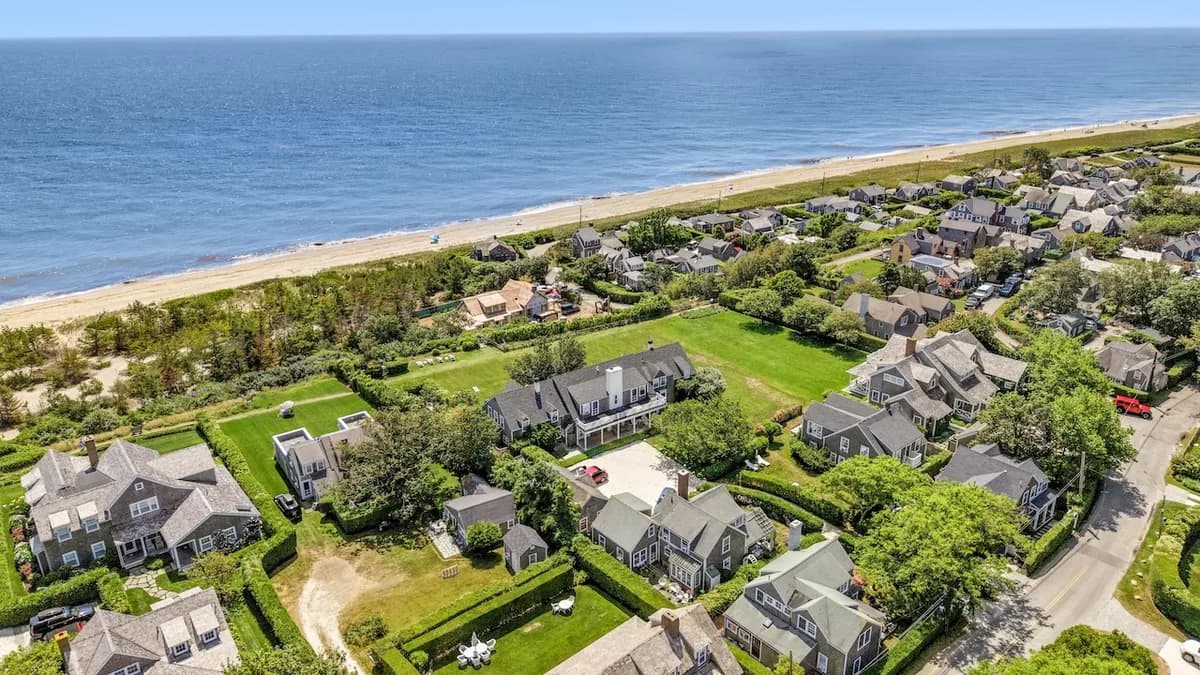 The expansive lawn stretching to the bluff’s edge, a private hedged patio with water views, and a second hedged patio has areas for a firepit, seating area, and space for lawn games. Additional amenities include two outdoor showers and direct access to the ’Sconset Bluff Walk and the beach via a Land Bank staircase.