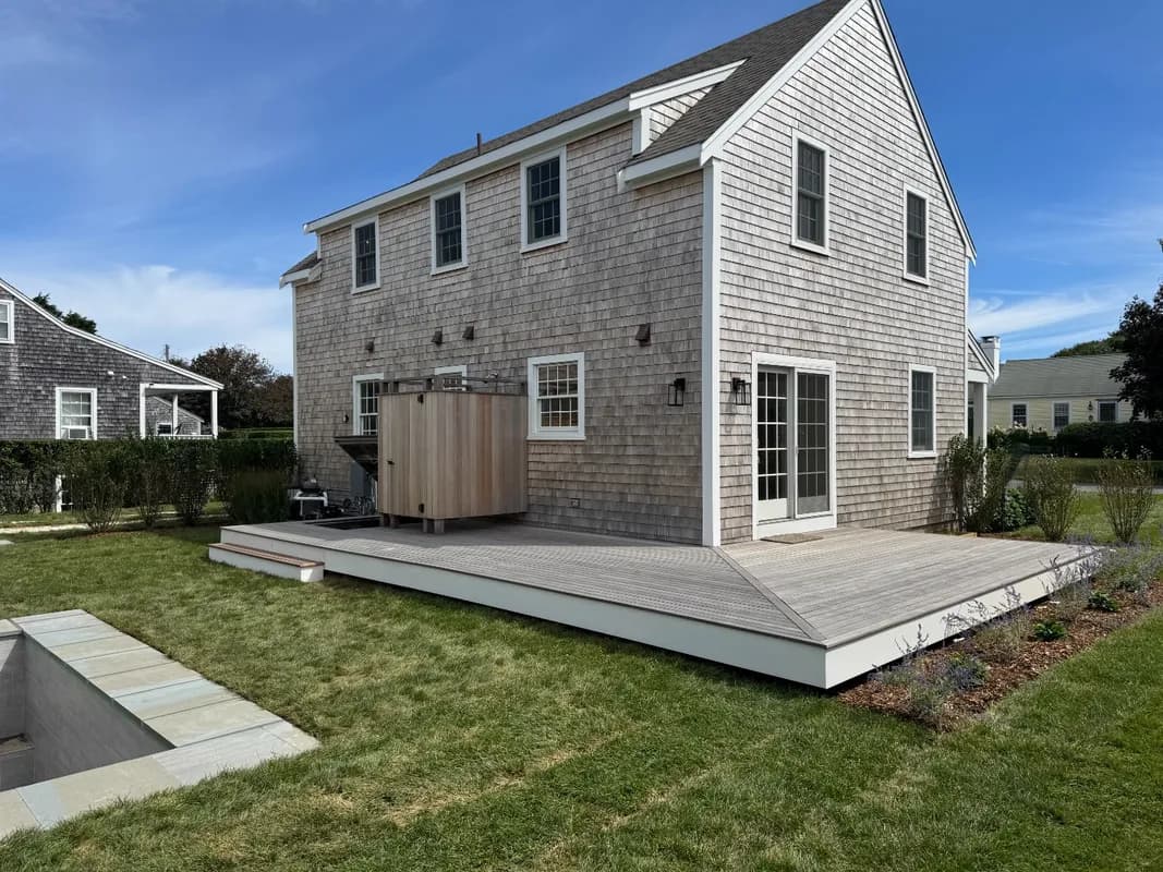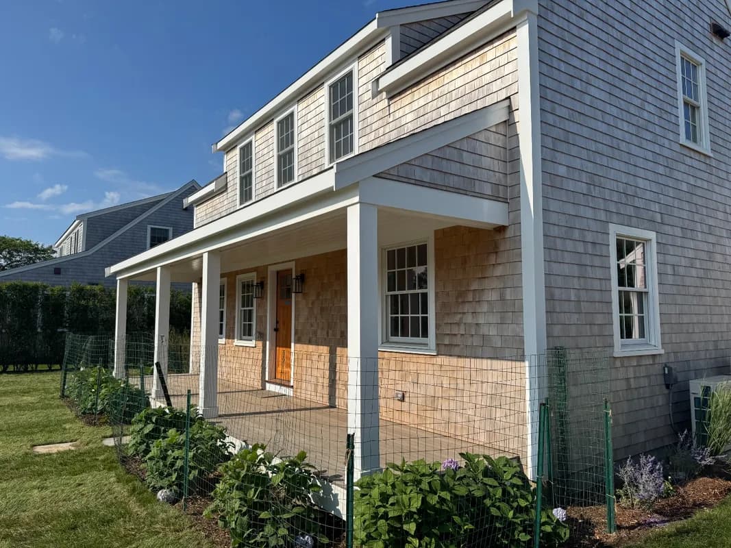 TRANQUILITY- located in desirable 'Sconset village, this newly constructed Cape-style cottage has been thoughtfully expanded and fully renovated. Designed with an efficient use of space and the island lifestyle in mind, the four bedroom home with oversized garage and studio suite is ideal for coastal living and checks all the boxes. The flexible layout offers various options for entertaining and a potential fifth bedroom for guests. Enjoy outdoor living with a large private yard, inviting front porch, wrap around deck and wifi controlled heated pool all surrounded by coastal landscaping and custom hardscape. Recently completed in 2025. Additional ground cover still exists for further expansion if desired.