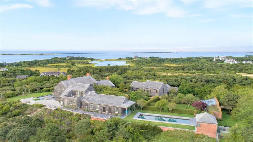 Stunning and secluded estate nestled within one of the most private and desirable areas on Nantucket Island. The home was built to an exacting standard and features a main house, guest cottage, staff quarters, two-car garage, pool/pool cabana with sauna, and greenhouse. The buildings are centered around an enclosed walled English perennial garden and orchard. These are further complemented by carefully planted grounds and walking trails. Nearly every room in the main house was designed and sited to maximize views and offer a seamless extension to the outdoors via Ipe decks and balconies. Everywhere you look there is an interesting design element to be enjoyed, whether it be an architectural detail or artistic accent. These are enhanced by the finish detailing which has been executed to the highest standards. The property is in excellent condition benefitting from full-time staff since built, and is of a caliber not often seen on the island. Surrounded by over 50 acres of conservation property and overlooking an additional 20.