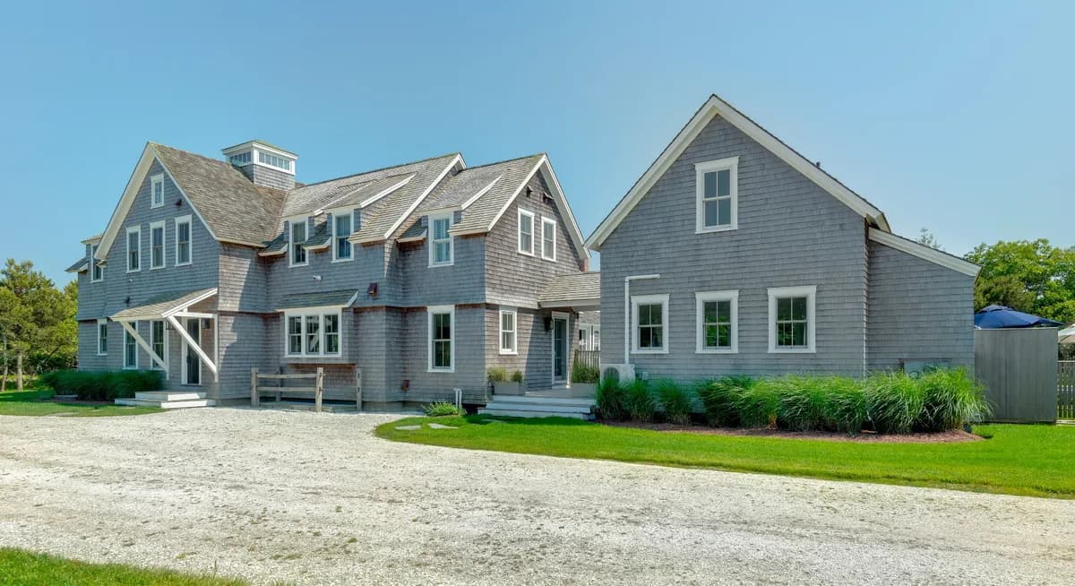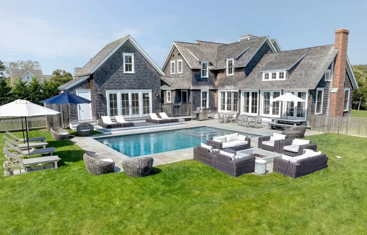 This thoughtfully designed home offers expansive landscaped grounds with a pool, hot tub, and a separate cabana featuring a loft—ideal for guests or added entertaining space. Inside, large windows throughout flood the home with natural light and offer uninterrupted views of the pool and surrounding gardens.