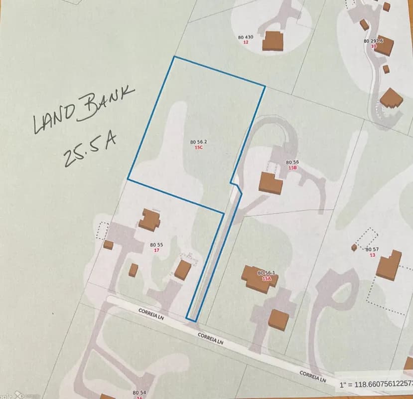 Very private wooded 1.1 acre rear lot (47,972 sf) situated on a quiet dead end lane off South Shore Road in Surfside. The property abuts 25.5 acres of Land Bank property and offers a wonderful opportunity to create an exclusive estate property. Well has been installed and there is power to the lot. LUG-1 zoning permits an allowable footprint of approximately 3350 sf. A 10' foot front, rear and side setback rule applies to rear lots. Access to 15C Correia Lane is via a shared driveway with 15B Correia Lane - SEE PLAN. Please do not drive onto property without listing agent; owner lives at 15B Correia and requests notification prior to showings.