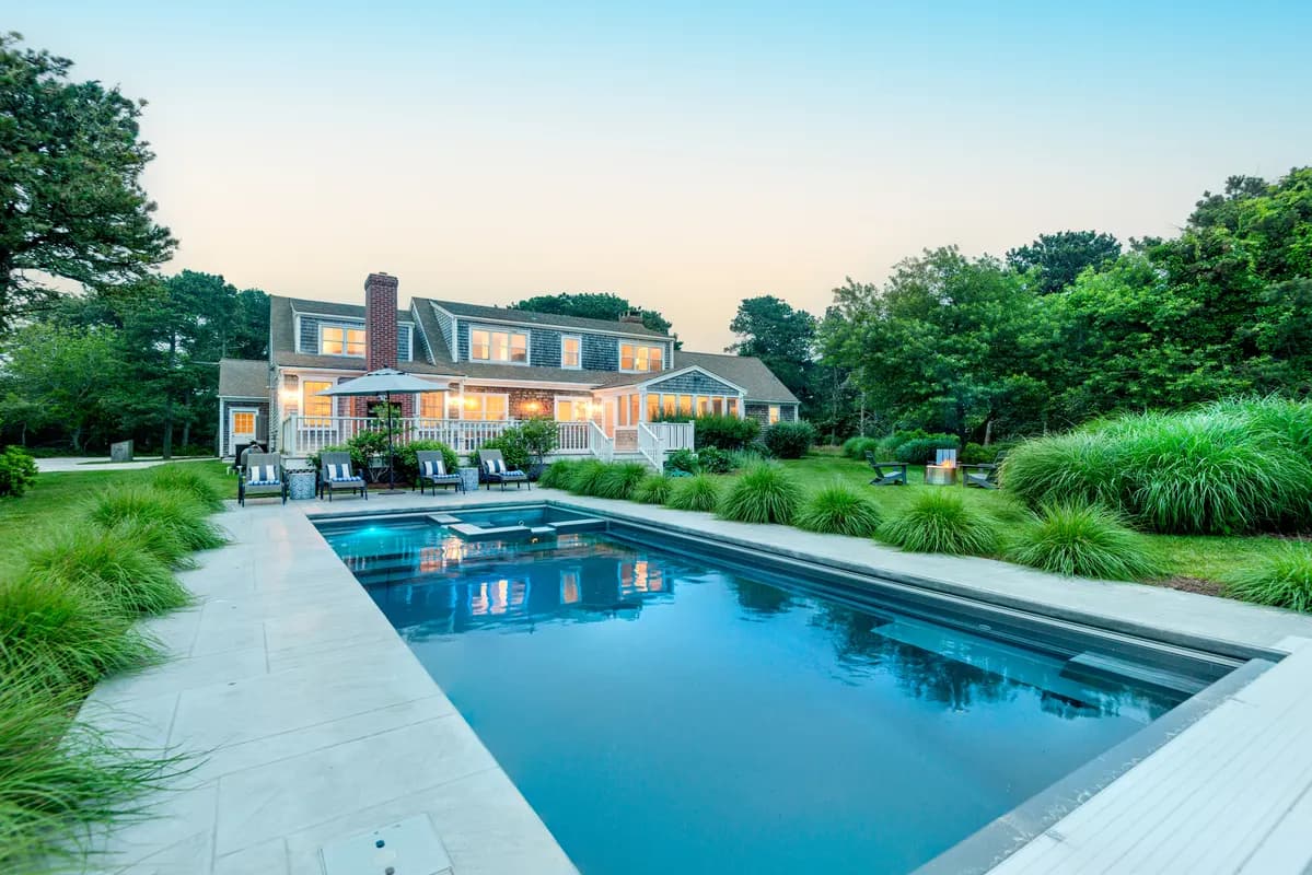 Experience the best of summer at this inviting retreat, set on nearly two private acres abutting Land Bank land in the desirable Surfside area. Designed for effortless outdoor living, 16 Gladlands features a sprawling yard ideal for lawn games, a pool and spa, two spacious porches, and an outdoor fireplace. This serene oasis offers both privacy and tranquility and is surrounded by lush, mature landscaping. The bike and walking path is just moments away, providing easy access to a refreshing dip at Surfside Beach. After a day enjoying all Nantucket has to offer, relax on the screened-in porch and take in the golden hues of the sunset. With room for future expansion, this property presents an exceptional opportunity to create your ideal Nantucket getaway.
