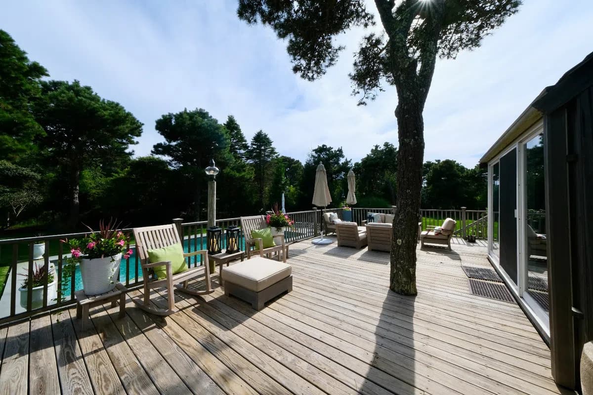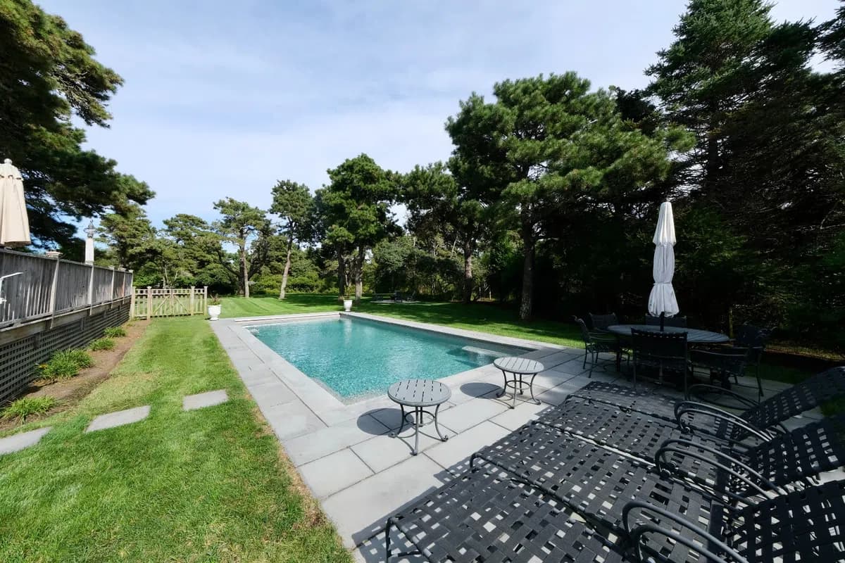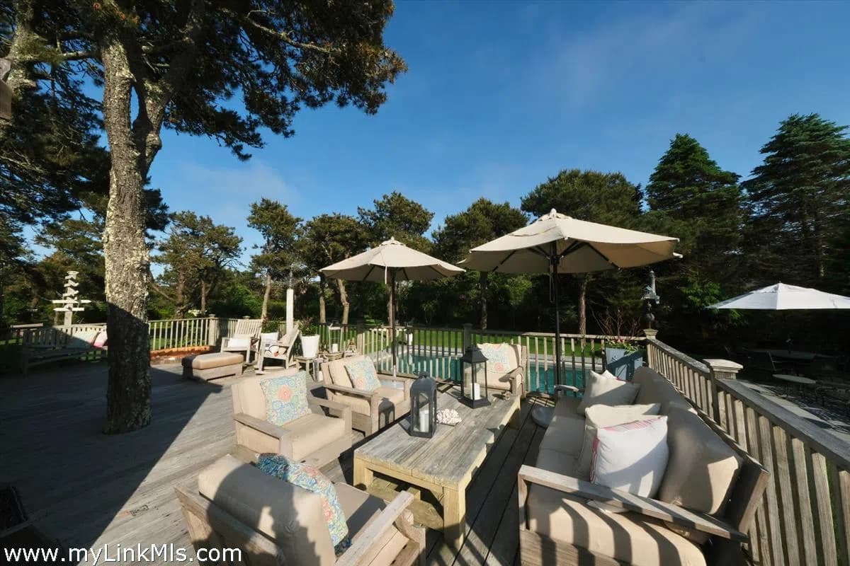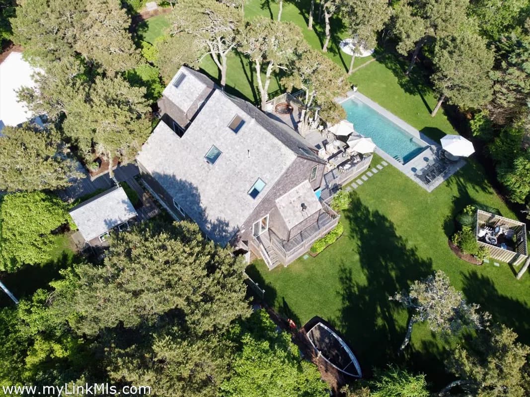Nestled away is an oasis of comfort and privacy in Surfside. Located on the corner of Masaquet and Pequot this 37,400 sqft lot awards privacy with the sound of the ocean. A short stroll down Pequot leads you directly to a sand path to one Nantucket’s most beautiful south shore beaches. Features include lush lawn with 18’x32’ pool(auto cover), wrap around deck, hot tub, wood burning fire pit, free standing shed, raised garden area and outdoor lighting. The open floor plan flows to the large deck and outdoor entertaining area. There are multiple sky lights that brighten the house. An attached en suite bedroom with private sitting area help to complete this offering. Approximately 1,100 sqft of remaining ground cover.