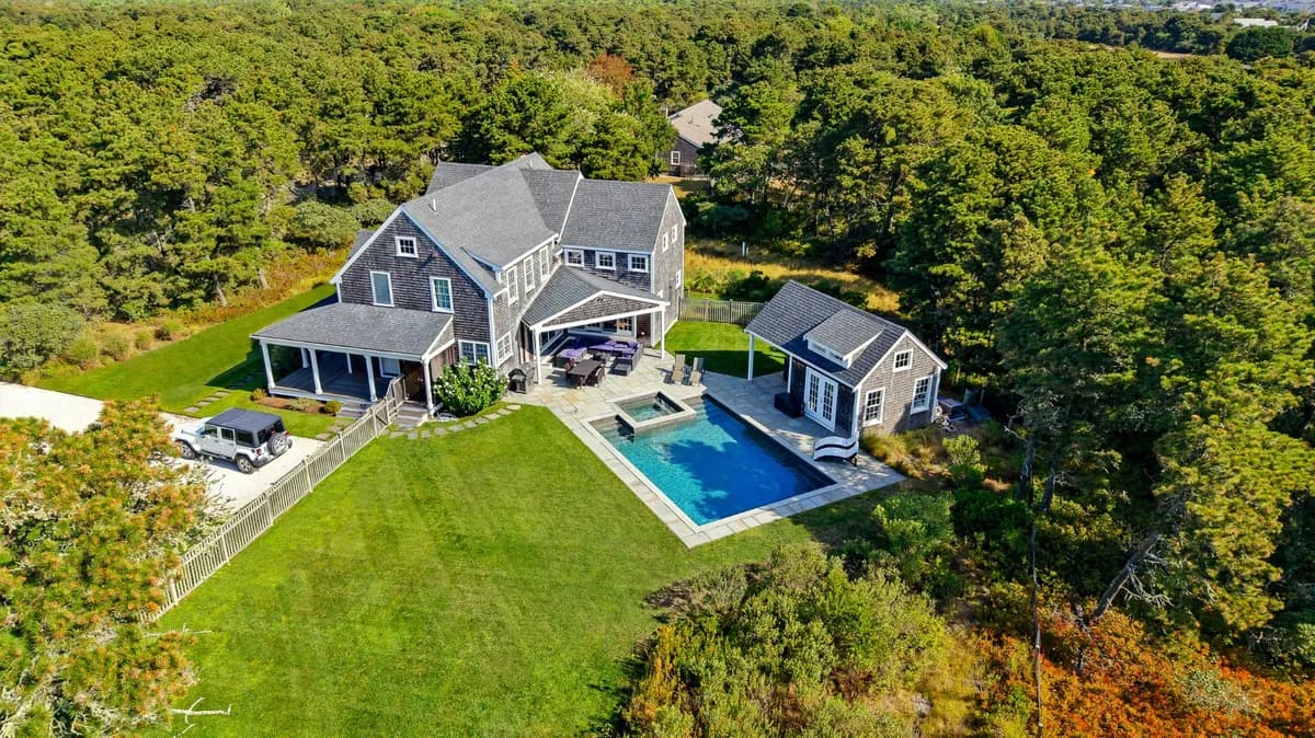Just minutes from Surfside and Nobadeer beaches, this 3,800 sq. ft. Nantucket home is set on nearly three-quarters of an acre with outstanding outdoor amenities. A heated Gunite pool with integrated spa, bluestone patio, and cabana create a private retreat in the fenced backyard, designed for effortless summer living and entertaining. Inside, three finished levels offer abundant natural light and flexible spaces for family and guests. Mature trees frame the property, while the setting across from 143 acres of State Forest provides both privacy and access to miles of walking and biking trails. With close proximity to the South Shore beaches and the anticipated Lovers Lane bike path project, this Surfside property offers a rare balance of lifestyle and long-term value.