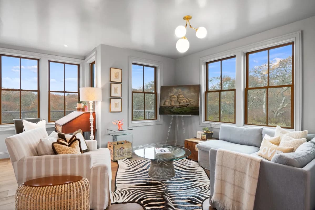 The main residence, Sea Lion, is rich in Nantucket charm, blending timeless design with modern amenities. This upside-down home was thoughtfully designed to maximize natural light and sweeping views, offering four spacious bedrooms, two and a half bathrooms, and four levels of beautifully appointed living space.