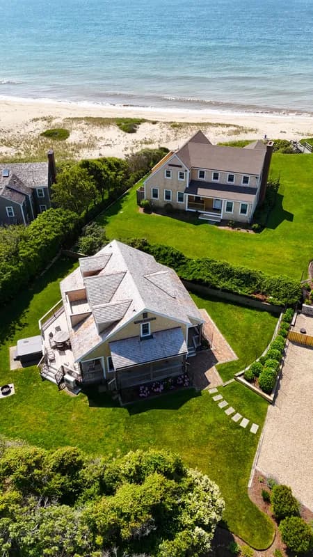 Stunning Oceanfront Estate | 3 & 3A Reeds Way - Set on a dramatic stretch of Nantucket’s south shore, this exceptional oceanfront property offers two homes with sweeping Atlantic views and direct shoreline access. Since Fall 2024, the estate has undergone extensive upgrades, including: all-new cedar roofing, shingling, trim, and exterior lighting; new boilers for heat and hot water; expanded decking; newly extended lawn over six feet to the east with retaining walls; refreshed landscaping; and interior electrical enhancements.