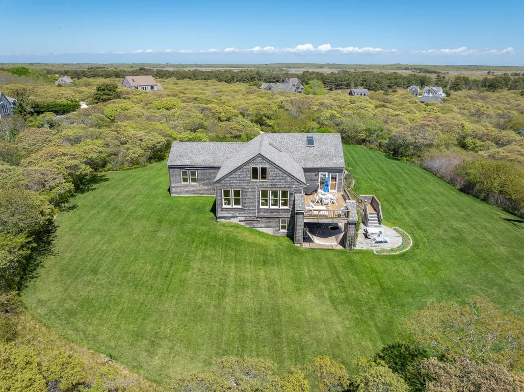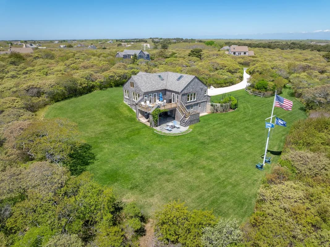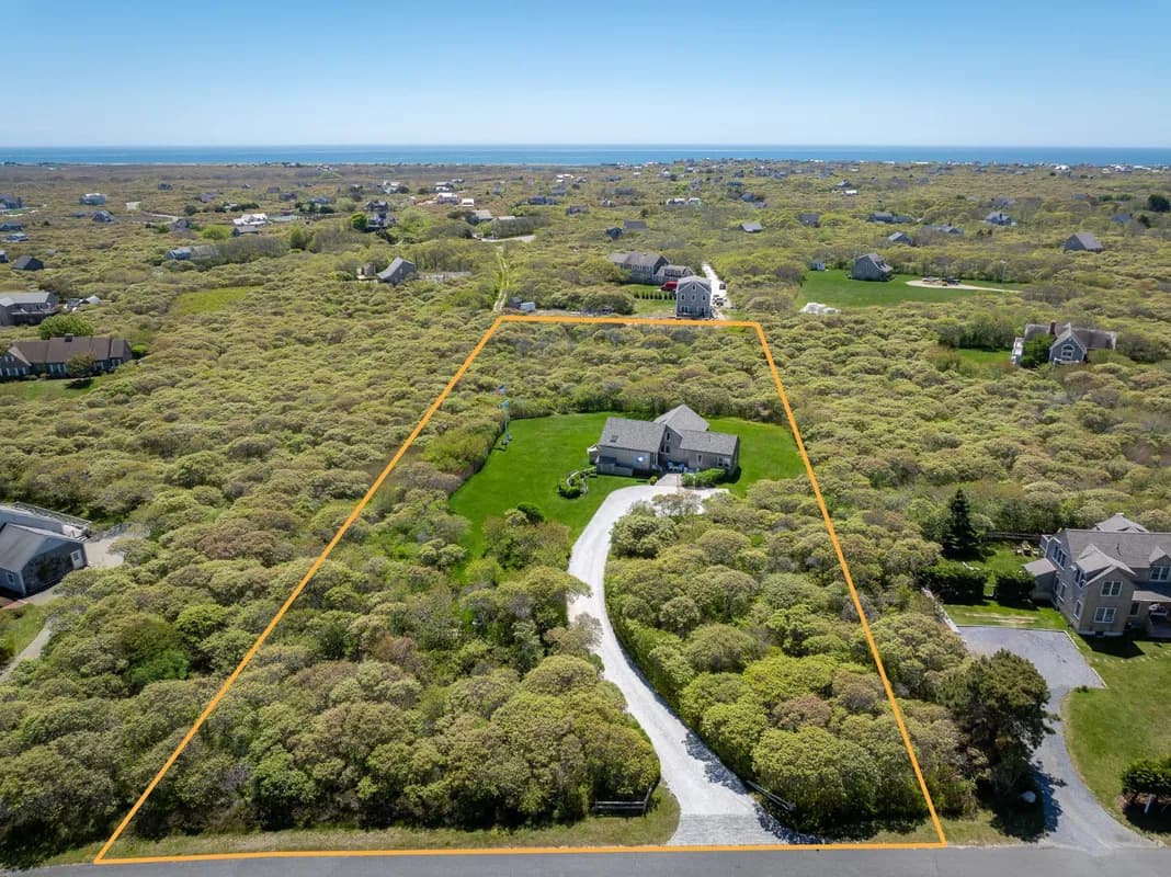 Nestled on a high ridge in Tom Nevers, this beautifully crafted 3-bedroom, 2.5-bathroom home sits on 2.75 acres, offering breathtaking views across the Atlantic Ocean, Sankaty Lighthouse, and three of Nantucket's renowned golf courses—Sconset, Sankaty, and Skinners. Built by the legendary Chris Holland, the home has been meticulously maintained and serves as the perfect base for quintessential Nantucket summers, just a short distance from the charming village of Sconset. With over two-thirds of the property still undeveloped, there is ample potential for future expansion. The property currently has a 4-bedroom septic system, with the possibility to increase septic capacity to support 10+ bedrooms and the potential to add an additional home. This unique property is a rare offering with endless possibilities, making it the perfect Nantucket retreat for today and a blank canvas for tomorrow.