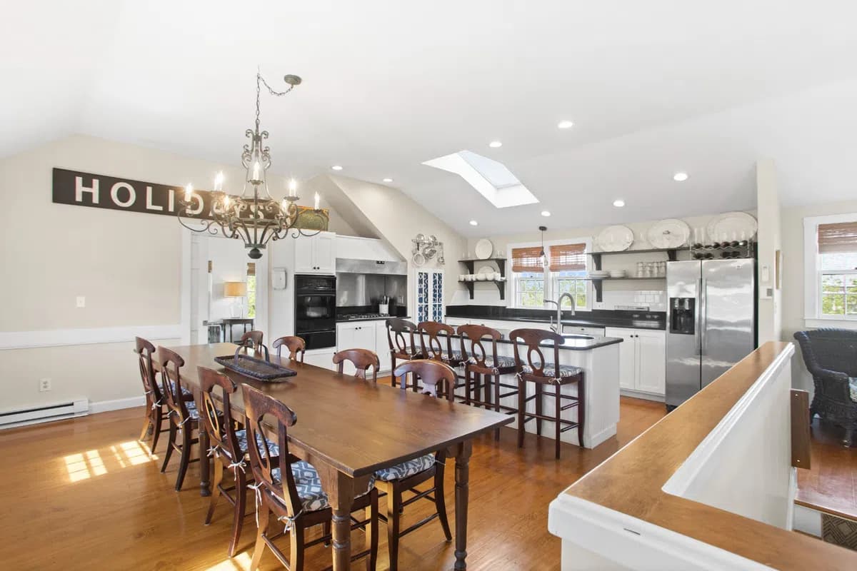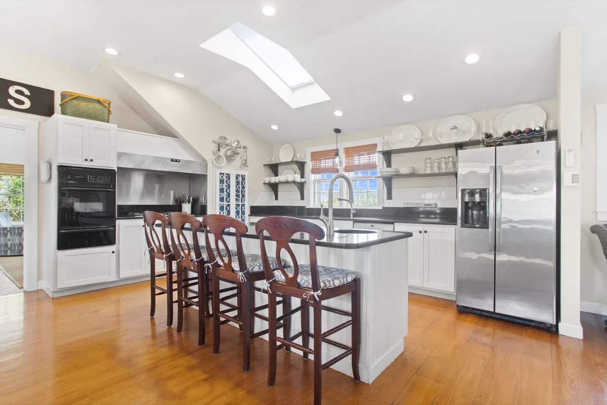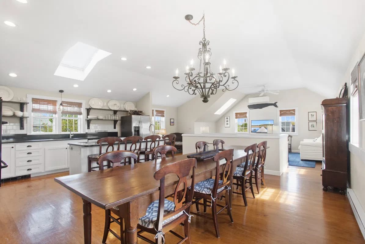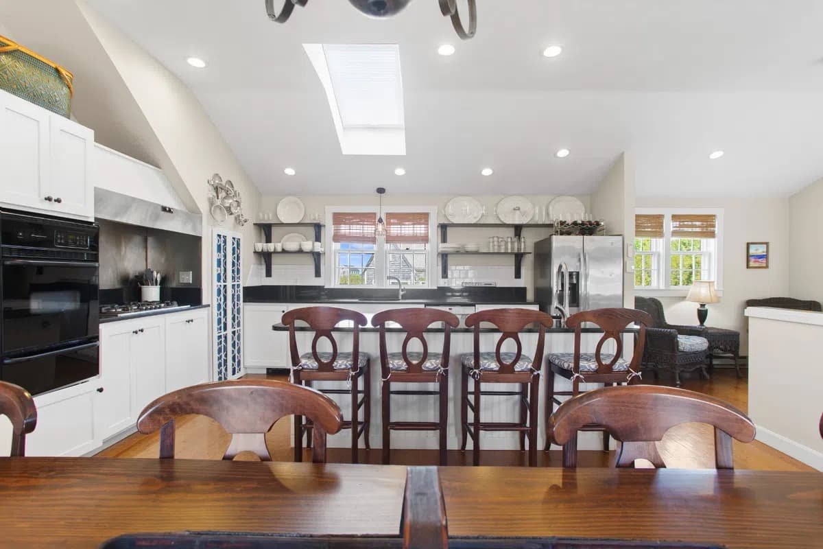 Welcome to this open and airy upside down style 3-bedroom home in the desirable Tom Nevers neighborhood. Featuring an open floor plan for entertaining and family gatherings. The owners have meticulously cared for and significantly improved the residence, including a spacious addition enhancing the primary bedroom suite and adding a second-floor living room with a full bathroom. They also constructed a shed that serves as an attractive, functional office space. Offered partially furnished, this house has been a popular rental and is available for new ownership at the end of August. The charming home features an open floor plan with a modern kitchen, a dining area seating ten, and a cozy sitting area with a gas fireplace. This property blends comfort, functionality, and style, making it a must-see in Tom Nevers.