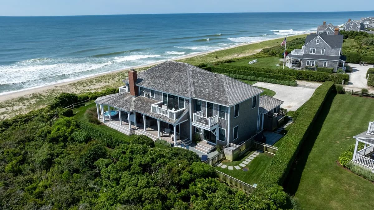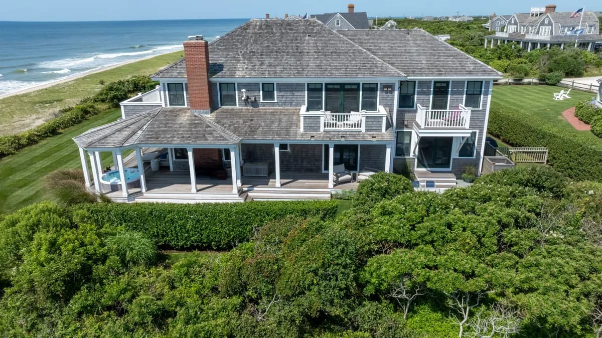 Welcome to this beautiful four bedroom waterfront home that lives as a six bedroom! The property features a charming wrap-around porch complete with a luxurious built-in hot tub, perfect for soaking and relaxation. The porch is complemented by multiple seating areas, providing plenty of spots to enjoy the outdoors, whether you're savoring a morning coffee or watching the sunset. An inviting outdoor dining area allows for al fresco meals, making it ideal for entertaining guests or enjoying family dinners under the stars. An outdoor shower adds a touch of convenience for rinsing off after beach outings. The expansive yard offers ample space for various outdoor activities and gardening. A series of steps and a well-maintained walkway lead you directly down to Tom Nevers Beach, offering easy access to the shoreline, through a well-vegetated slope.
