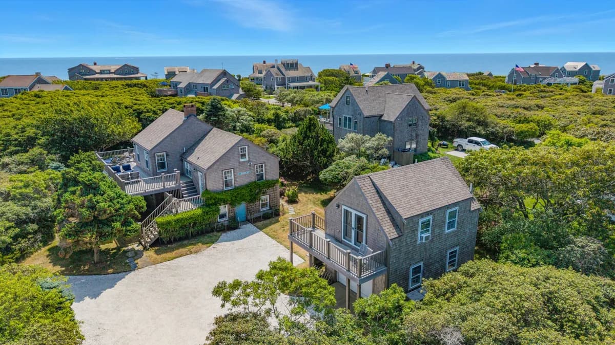 A tranquil retreat awaits you. This multi-level, light and bright home features views of the Atlantic Ocean and Sankaty Lighthouse. Nestled just off Old Tom Nevers Road, the white shell driveway at the end of Hollister Road takes you to the Main House as well as the garage. Enter through the kitchen and dining area, walk a few stairs to the spacious living room with its cathedral ceiling, abundant windows to showcase the ocean views, a fireplace, and access to the wrap-around deck. Bedrooms are situated on the lower levels. An oversized garage has a large studio dwelling on the second floor with a large deck. Beach access is 0.3 miles from the home. Potential for pool needs verification. This turn-key property is a gem.