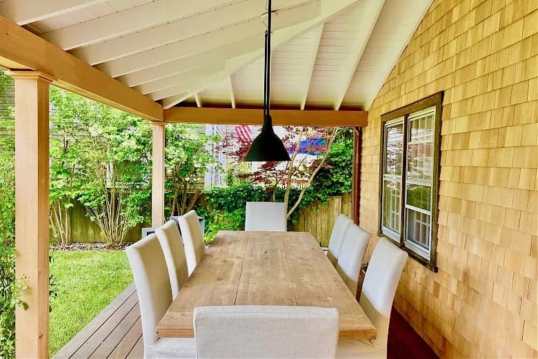A great family home located on a quiet street in the heart of downtown. A private yard with a large covered porch combined with the newly renovated house create a comfortable indoor and outdoor setting. The renovations include a new roof, siding, reglazed windows, AC system, kitchen and all new baths. High end appliances, ship lap walls, three fireplaces, attached garage, en suite bedrooms are a few of the many attributes 10 Lyon Street has to offer. The outdoor porch has two fire pits for relaxing and a table for dining alfresco. A bright and cheerful property on one of Nantucket's quintessential streets with off street parking. Strong rental history with repeat tenants.