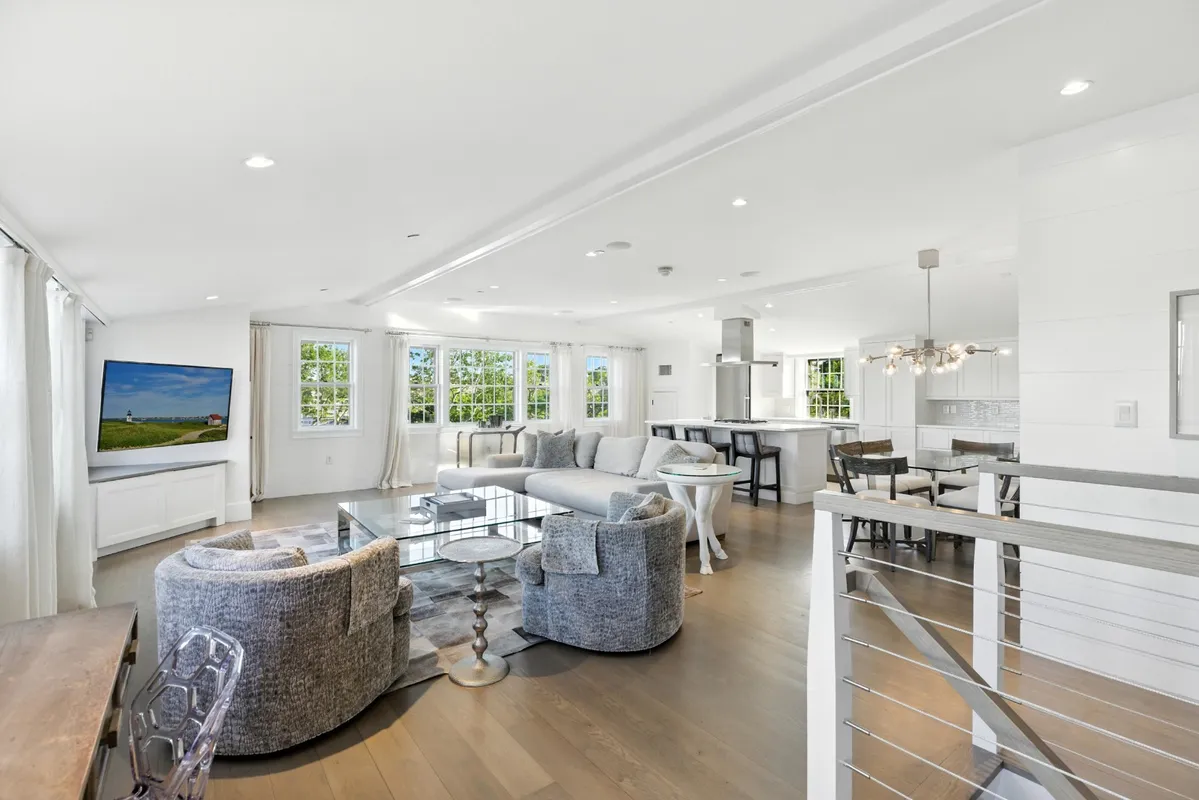 Penthouse with Iconic Harbor Views. Immerse yourself in premier downtown waterfront living in this exquisite penthouse featuring panoramic vistas of Nantucket Harbor. An open-concept layout leads to a spacious mahogany deck with unobstructed views of Straight Wharf and Nantucket Harbor. The primary en suite bedroom boasts dual walk-in closets, complemented by two additional en suite guest bedrooms and a designer powder room. An expansive roof walk crowns the residence, offering a commanding perspective of the Island’s Harbor and all of Downtown.