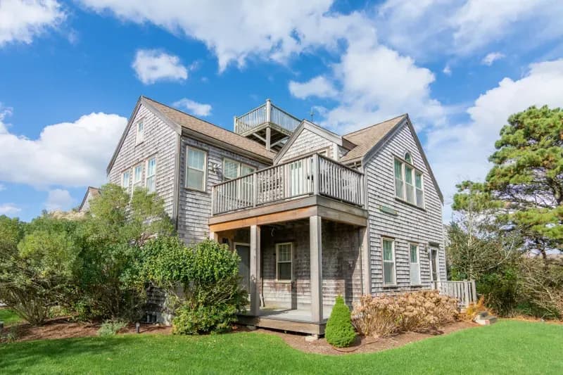 Spacious upside down style house one mile from Madaket Beach. Main entry & closet, three bedrooms; one queen, one with two twin beds, one with a queen bed, two full baths, laundry area. Open staircase to second floor, cathedral ceilinged family room, modern kitchen with granShow More