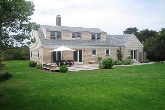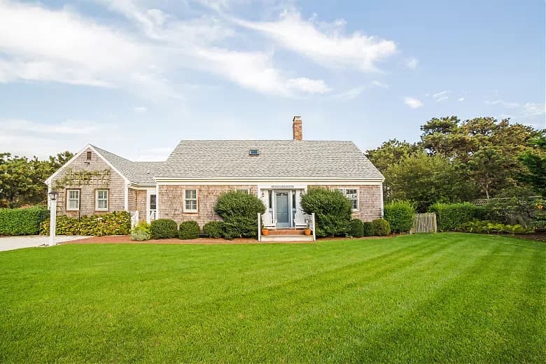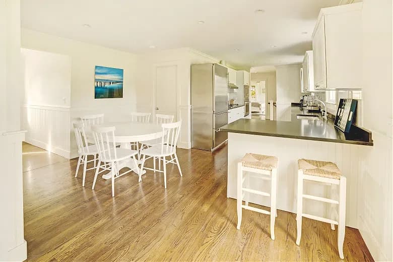 First floor: Living room, eat-in kitchen, half bath off of mudroom, master bedroom and guest room both with en suite bathrooms.