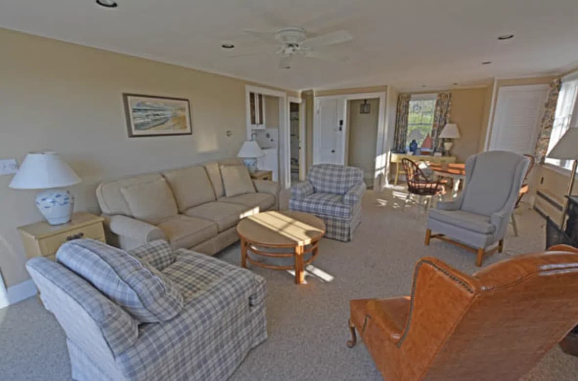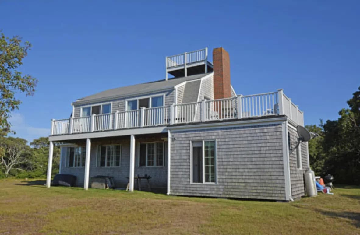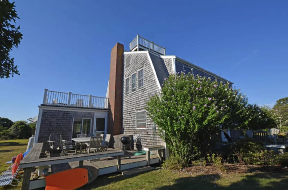 Comfortable family house located in a secluded area near Wauwinet and Pocomo. First floor: kitchen, dining area, three bedrooms, full bath, deck. Second floor: living room with wet bar and sliders to deck, master bed room, bath, kitchenette. Widow's walk. Great water views.Show More